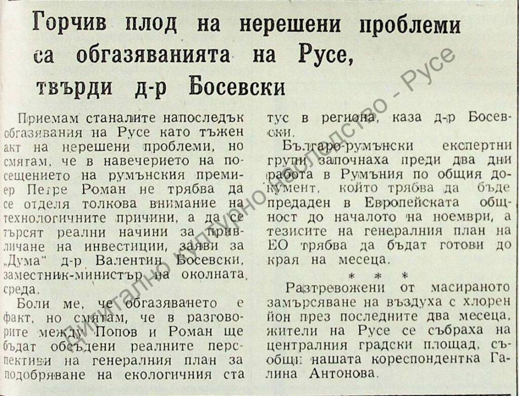 Заглавие Горчив плод на нерешени проблеми са обгазяванията на Русе, твърди д-р Босевски