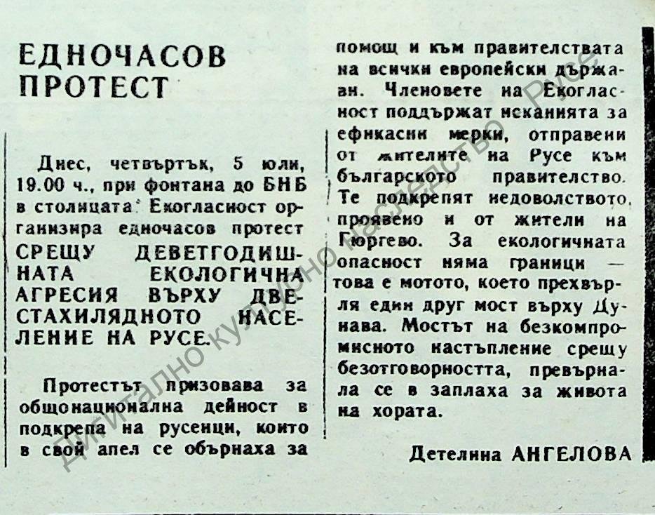 | Място на издаване | Организиран от "Екогласност" срещу екологичната агресия върху населението на Русе |