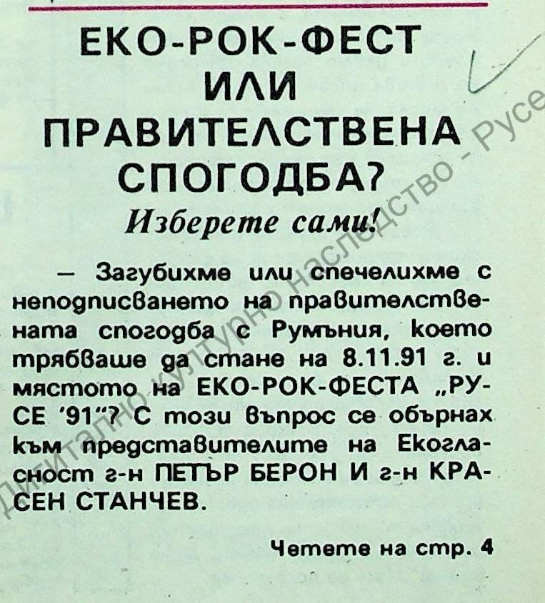 | Място на издаване | "Въпрос към представителите на Екогласност Петър Берон и Красен Станчев. Разговора води Розалина Евдокимова." |