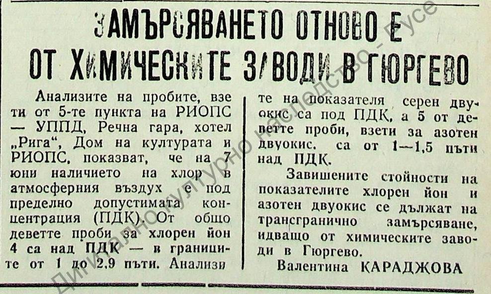 | Заглавие | Замърсяването отново е от химическите заводи в Гюргево |
