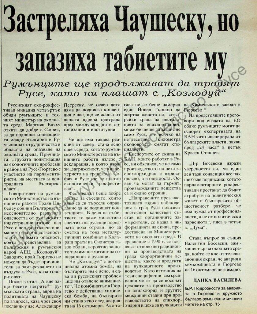 | Физически носител | ІІ, № 45, 12 ноем. 1991, с. 13. |
