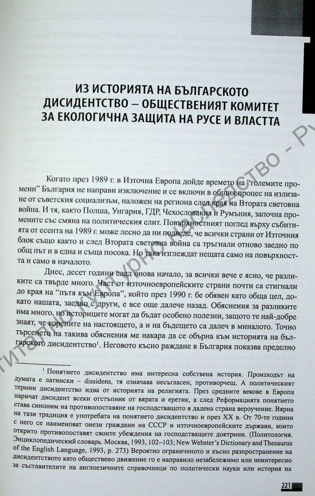 | Заглавие | Из историята на българското дисидентство – Общественият комитет за екологична защита на Русе и властта |