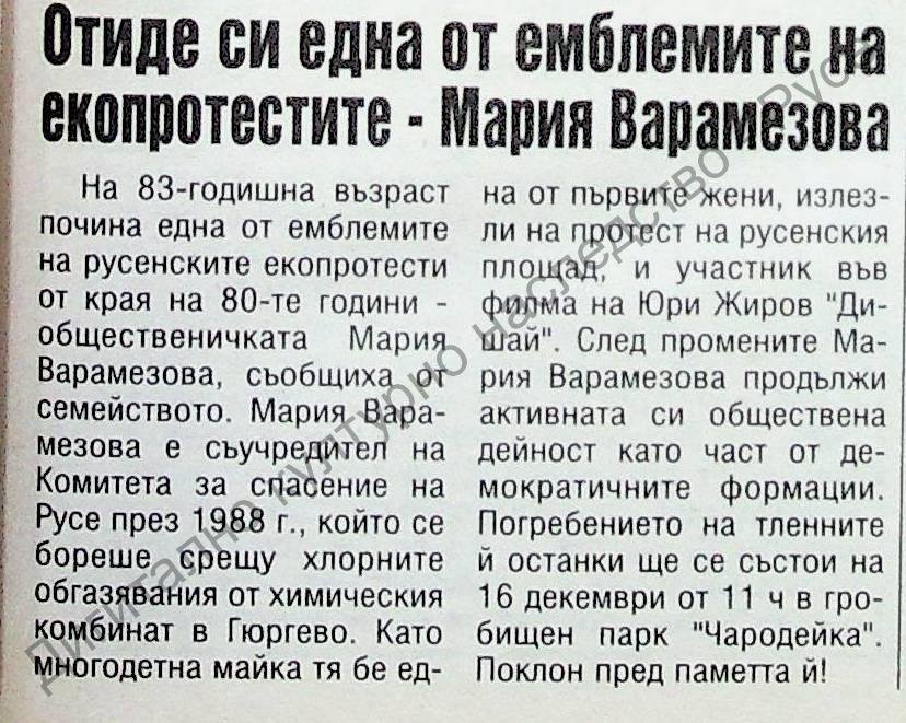 | Заглавие | Отиде си една от емблемите на екопротестите – Мария Варамезова |