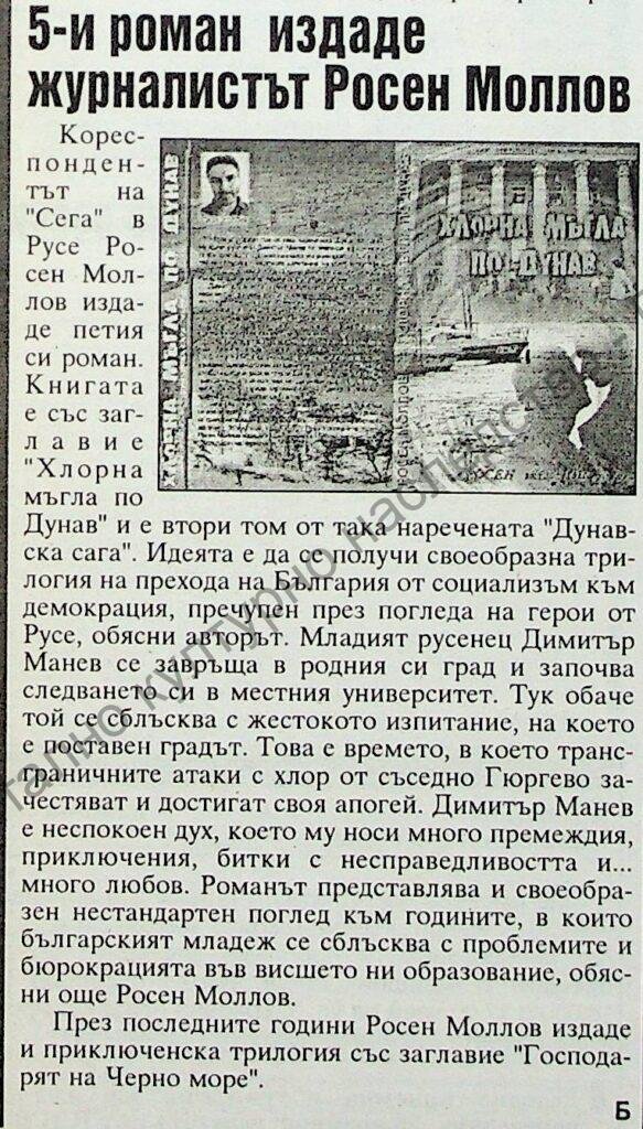 | Заглавие | [Пети] 5-и роман издаде журналистът Росен Моллов |