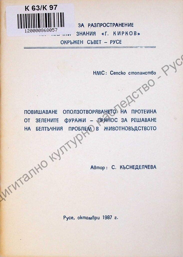 | Заглавие | Повишаване оползотворяването на протеина от зелените фуражи - принос за решаване на белтъчния проблем в животновъдството |