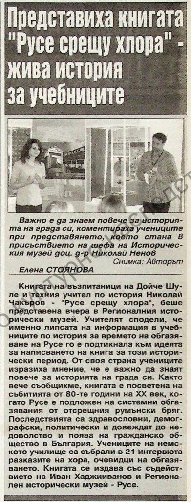 Заглавие Представиха книгата "Русе срещу хлора“ – жива история за учебниците