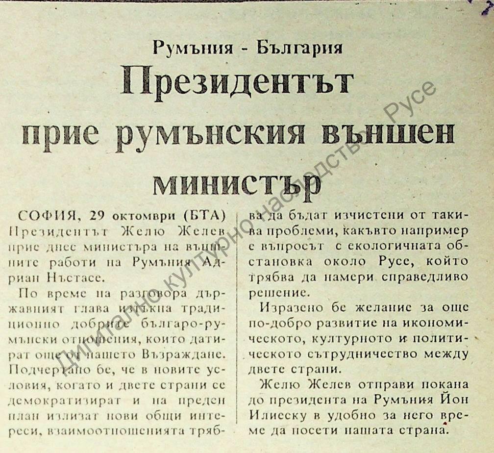| Място на издаване | Поставен въпросът за екологичната обстановка в Русе. |