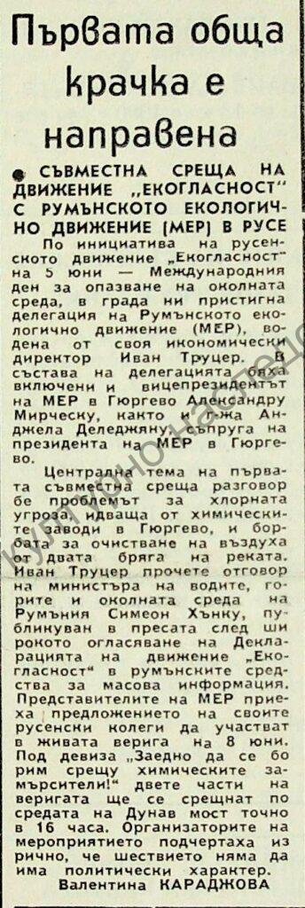 | Място на издаване | Среща на "Екогласност" с румънското екологично движение |