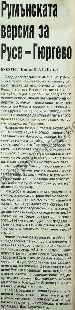| Място на издаване | Отношението на румънската страна към проблема с хлорното замърсяване на Русе |