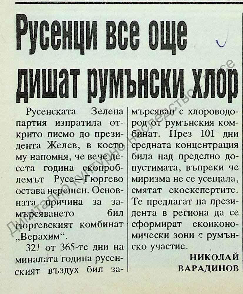 Заглавие Русенци все още дишат румънски хлор
