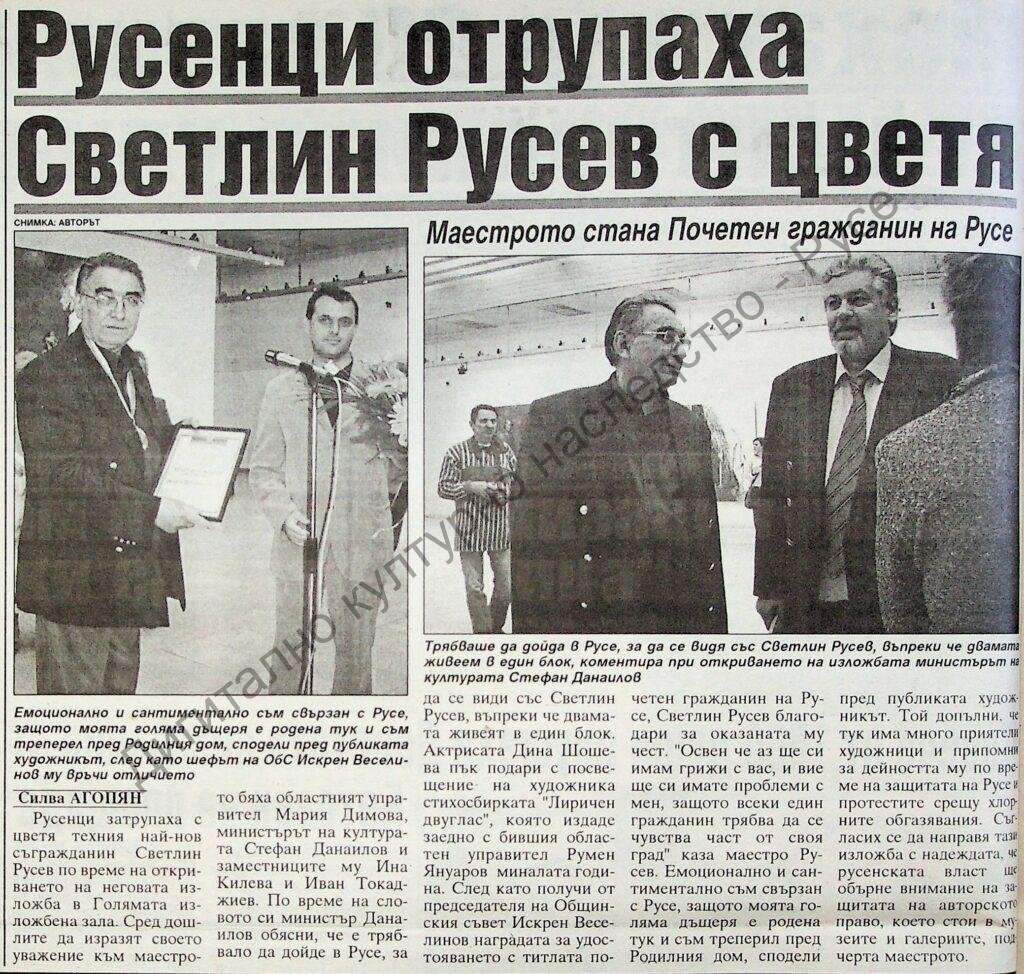 | Заглавие | Русенци отрупаха Светлин Русев с цветя |