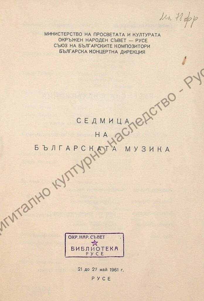 | Заглавие | Седмица на българската музика 21 - 27 май 1961 |