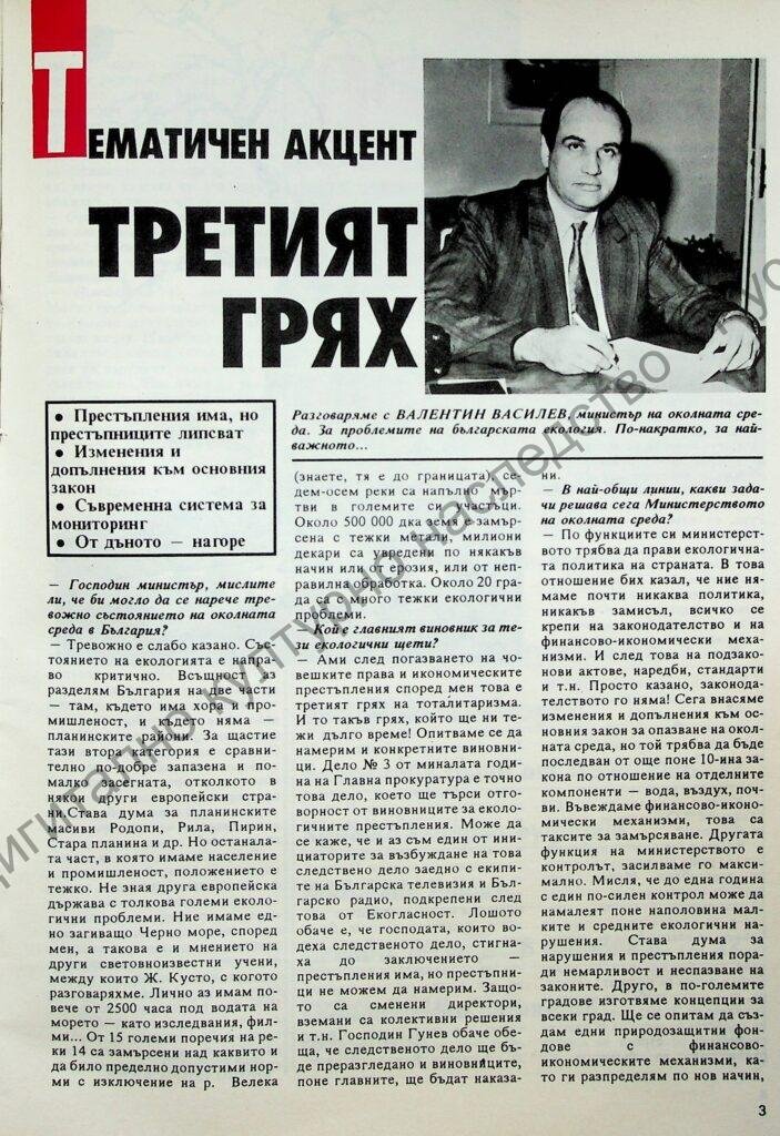 Място на издаване "Подпис: Кина Панагонова. Разговор с министъра на околната среда – за проблемите на българската екология. Засяга и проблема Русе – Гюргево"
