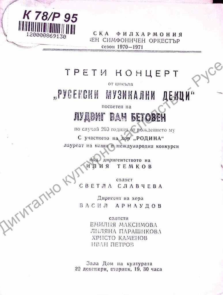 | Заглавие | Трети концерт от цикъла "Русенски музикални дейци", посветен на 200 години от рожд. на Лудвиг ван Бетовен |
