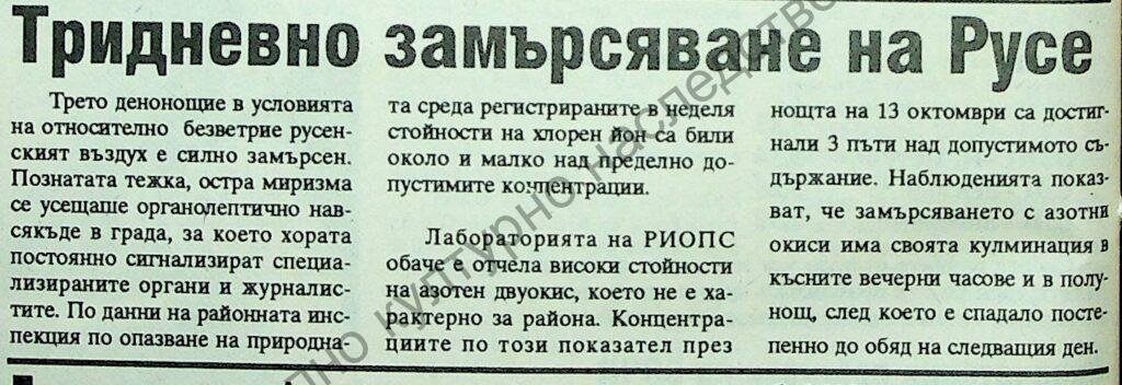 | Заглавие | Тридневно замърсяване на Русе |