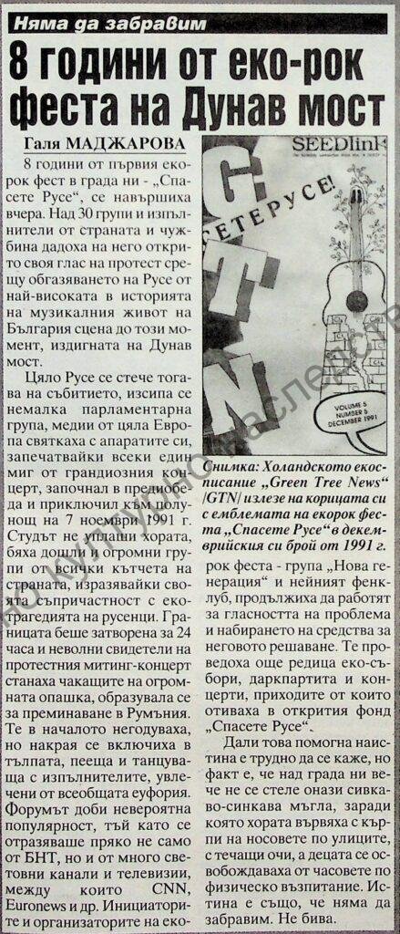 | Място на издаване | "Спасете Русе!“ - ретроспекция на грандиозен екорок фест в протест срещу обгазяванията в града |